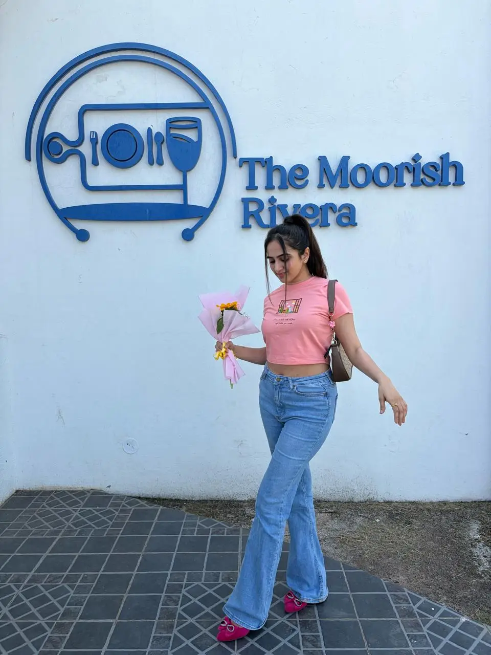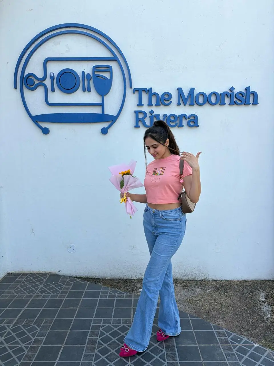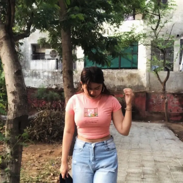 This peach color window printed crop top looks even nicer in real life. The print is small and adorable, which makes the top look very soft and aesthetic. The fabric feels smooth and comfortable, and the fit is really flattering without being too tight.