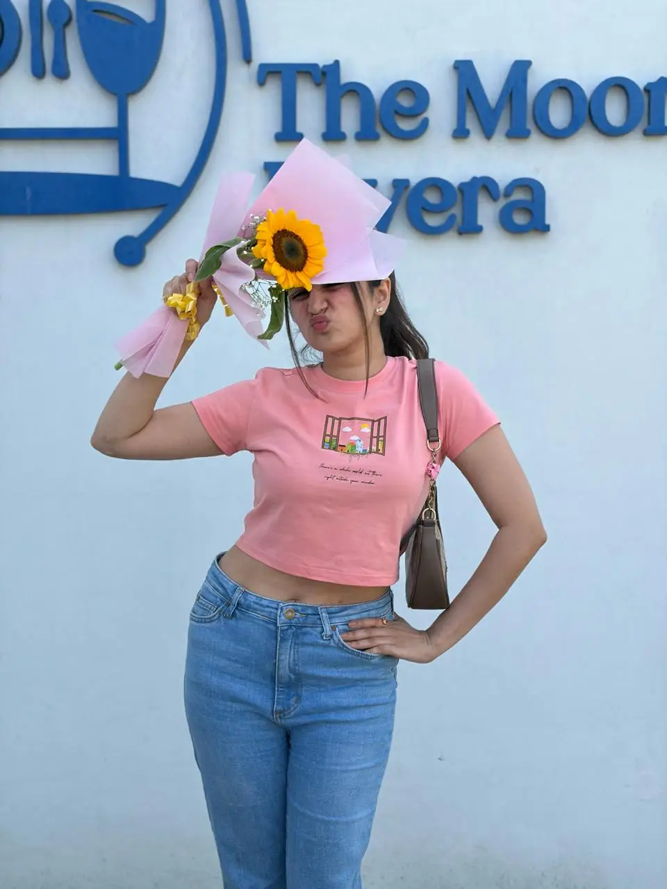 This crop top is truly beautiful and has quickly become a favorite in my wardrobe. The soft peach color is absolutely lovely it gives a warm, flattering glow. The window print is so unique and charming, giving the shirt a romantic, thoughtful aesthetic. Highly recommend if you love dreamy, aesthetic fashion!