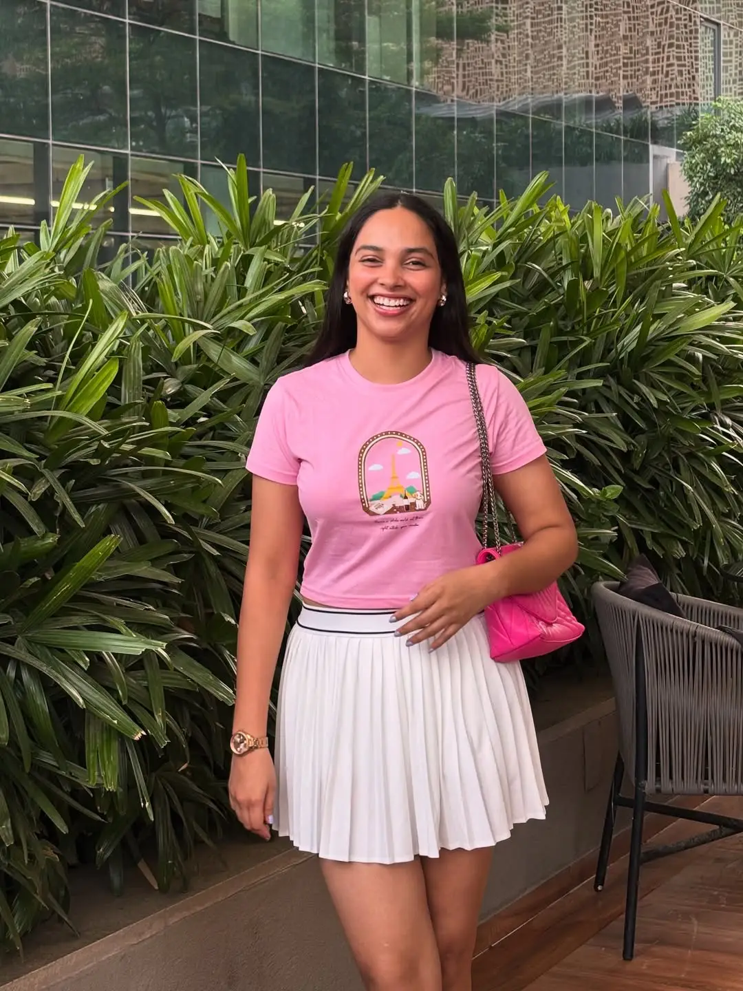 This crop top is such a sweet little piece I absolutely love how the Eiffel Tower print gives it a soft, whimsical vibe without trying too hard. The pink shade is flattering on all skin tones, and the fabric feels soft and breathable, which is perfect for both sunny outings and cozy coffee mornings. I paired it with a flowy skirt for a brunch date, and it gave the cutest Parisian-girl energy .