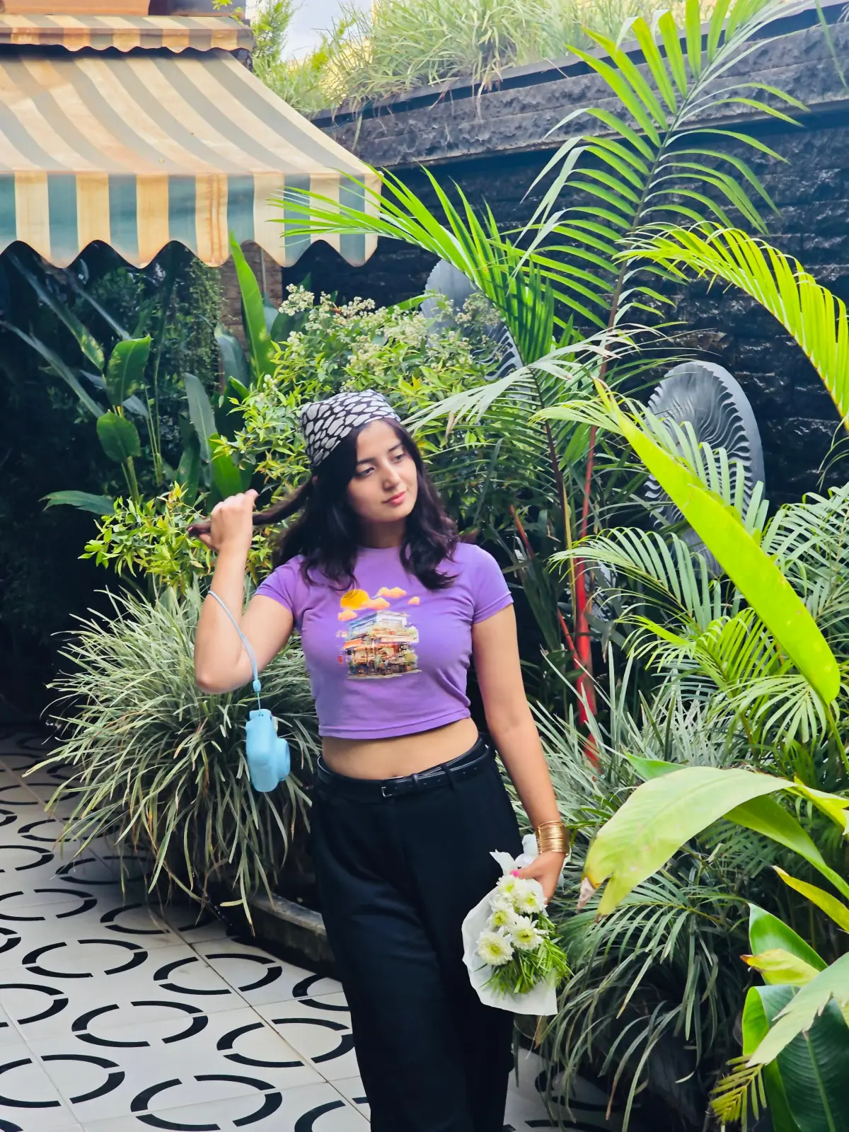 Bought this lavender cafe crop top and I’m honestly obsessed with how cute it looks in real life. The color is soft and unique, and the little coffee shop print gives it a very aesthetic, cozy vibe. The fabric feels comfortable and stretchy, so it fits nicely without feeling tight.