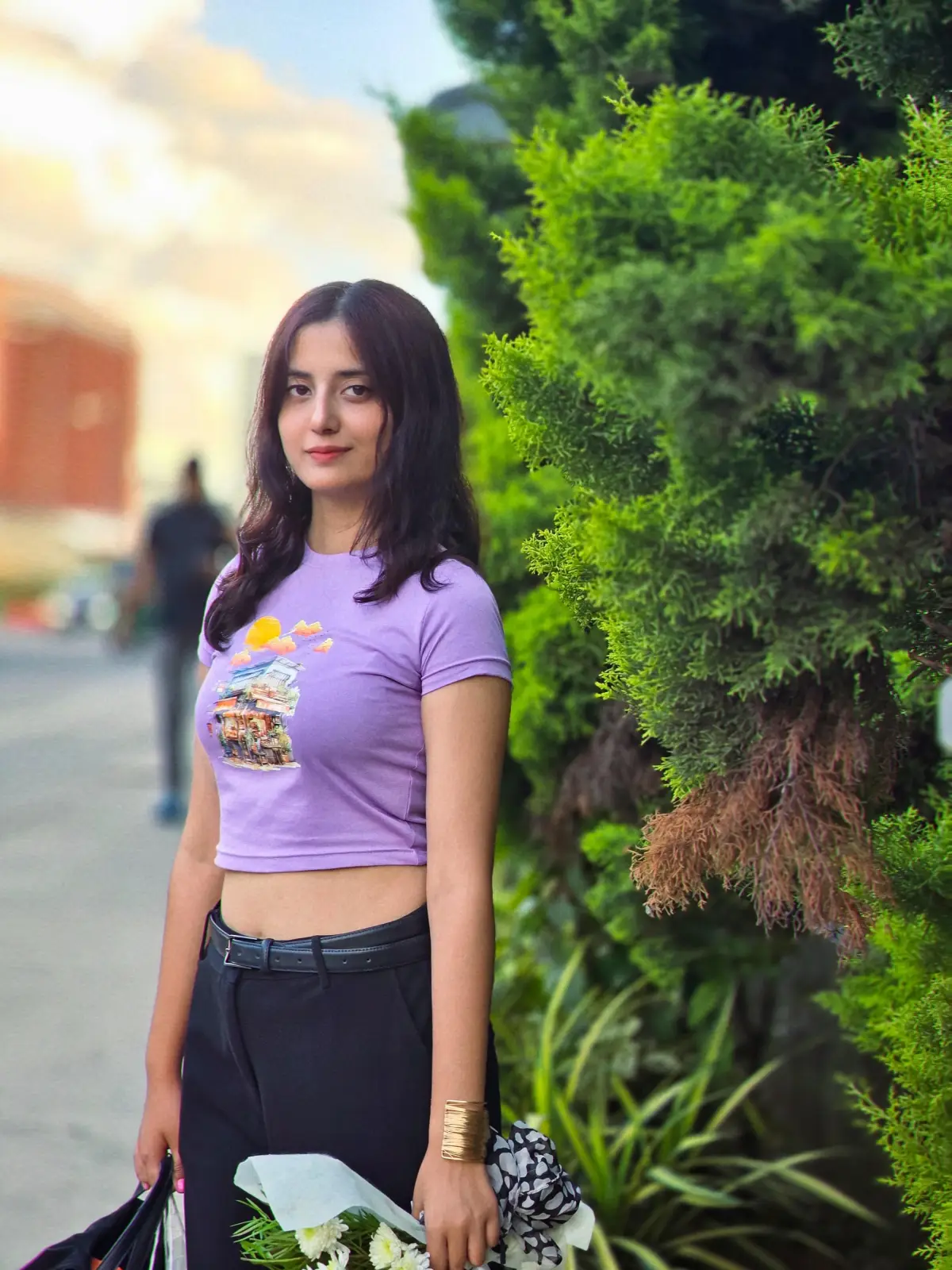 Absolutely delighted with this crop top! The lavender color is stunning and vibrant. The cafe print is artistic, detailed, and high quality. The material is soft with a great stretch, providing a super flattering and comfortable fit. It’s true to size and instantly elevates any casual look. Highly recommend this unique crop top