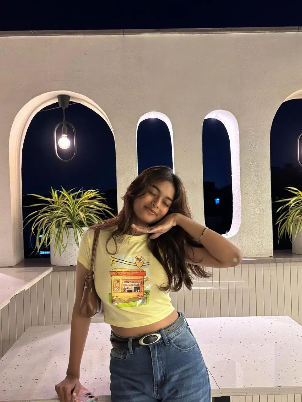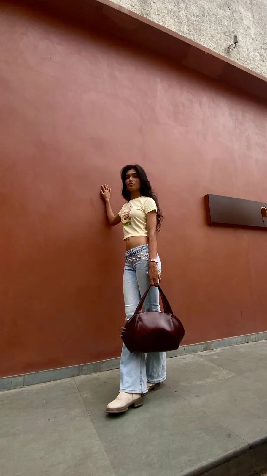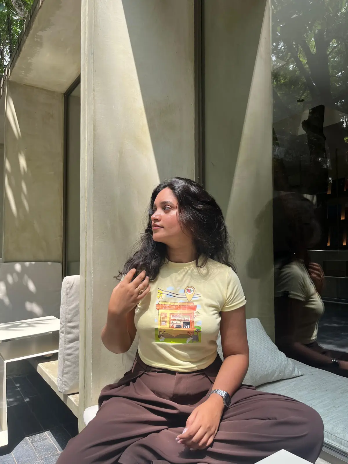 I absolutely love how this crop top stands out without trying too hard. The soft yellow shade feels fresh and summery, and the little cafe graphic adds such a fun, playful touch. It’s super easy to dress up or down I wore it with flared jeans and boots, and the look was effortlessly cool. The material is lovely