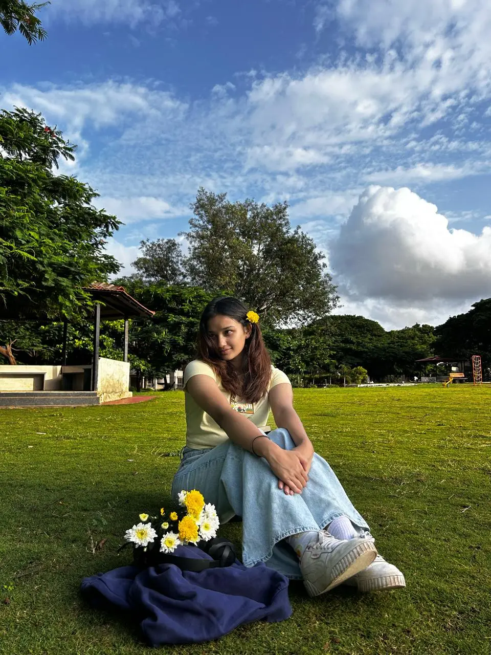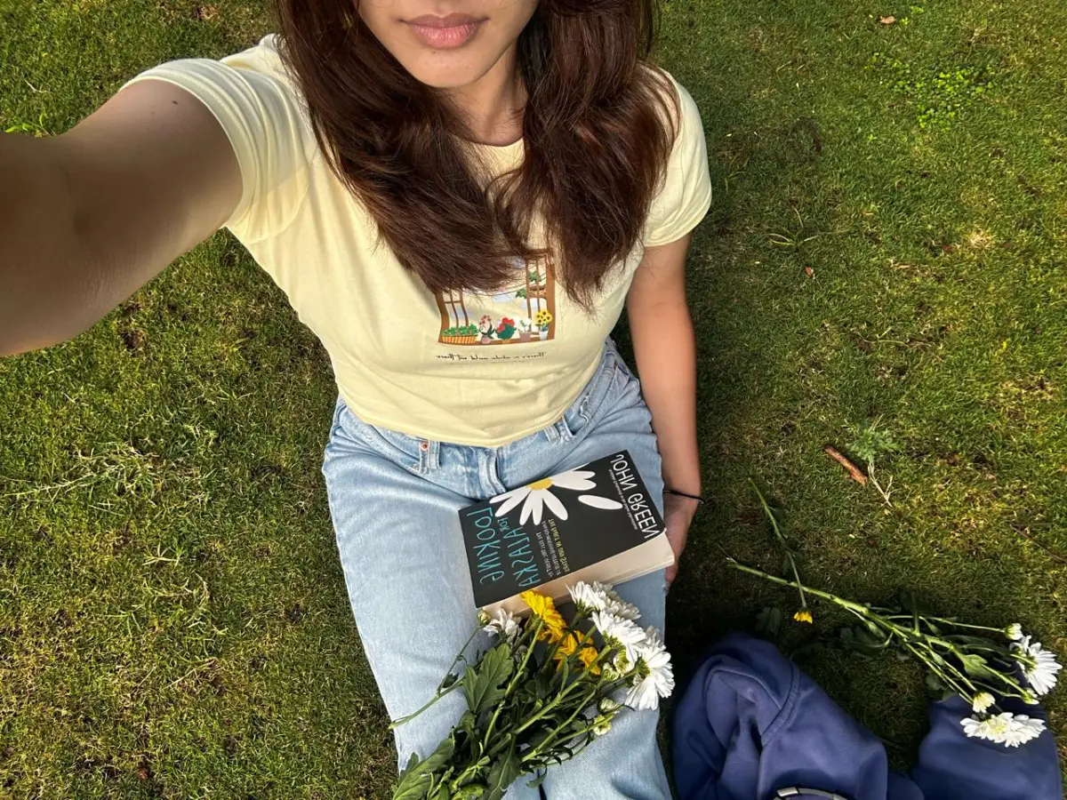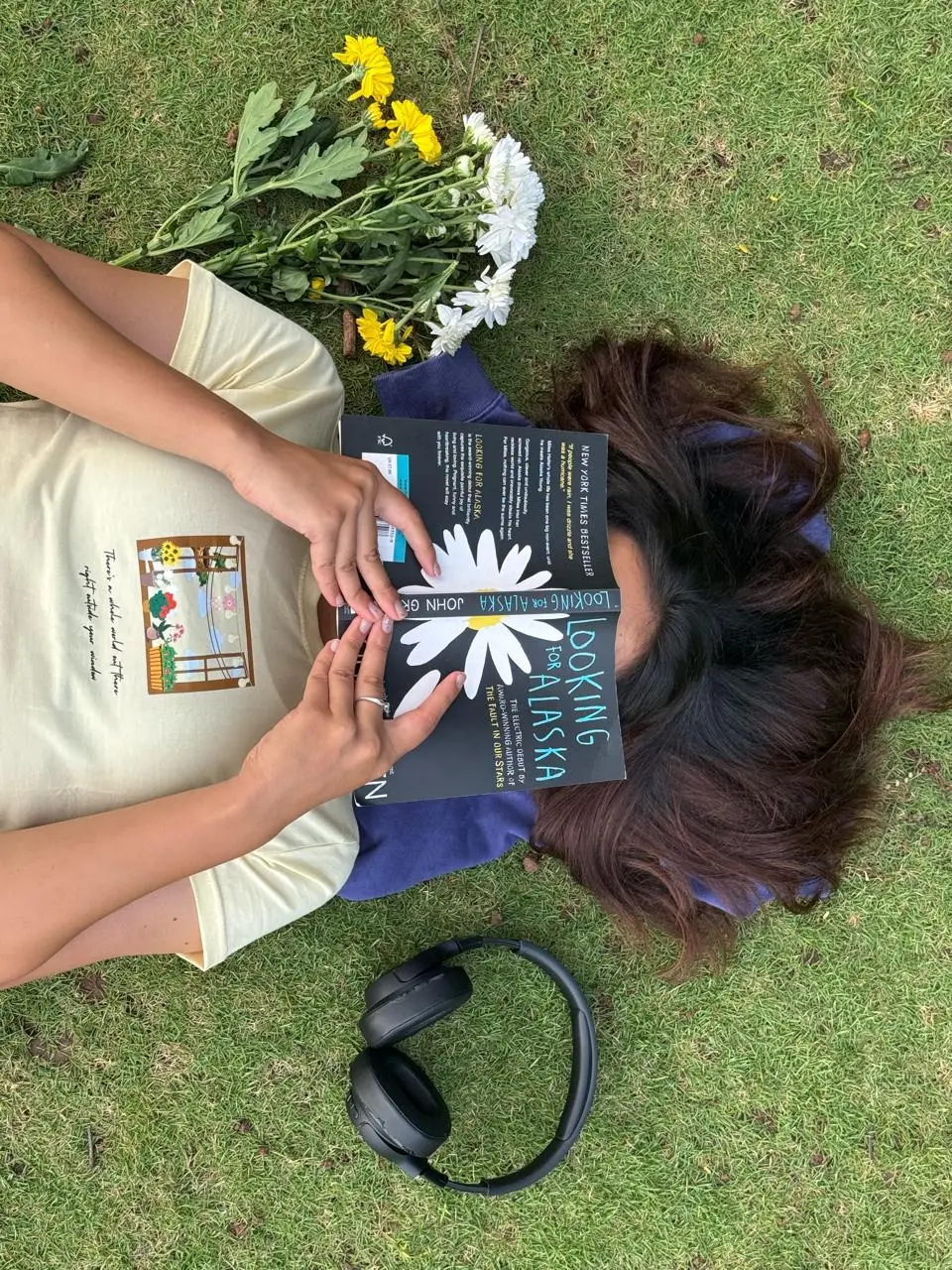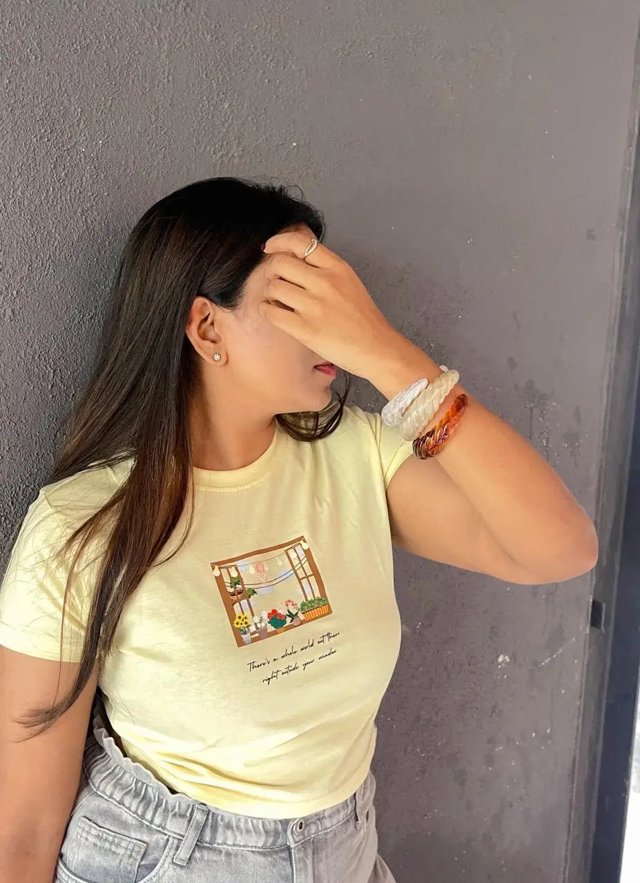 Wearing this tee feels like living in a little daydream. The pastel yellow is so soft and calming, and the delicate cafe window print with flowers gives it the sweetest touch it honestly feels like something you’d wear while reading poetry under the sun which is exactly what I did. The fit is flattering. It’s one of those pieces that instantly makes your outfit feel whimsical and effortless. Perfect for picnics, reading in the park, or just adding a bit of charm to an ordinary day