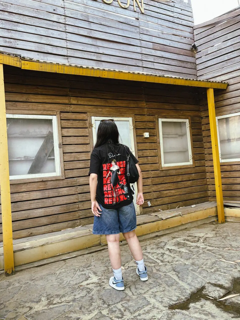 This oversized tee is such a vibe! The Princess Diana print on the back is absolutely stunning and makes the whole outfit feel powerful without even trying. The fabric is soft, the fit is relaxed in the best way, and it drapes exactly how an oversized tee should. I threw it on with denim shorts and instantly felt like I had my life together.
