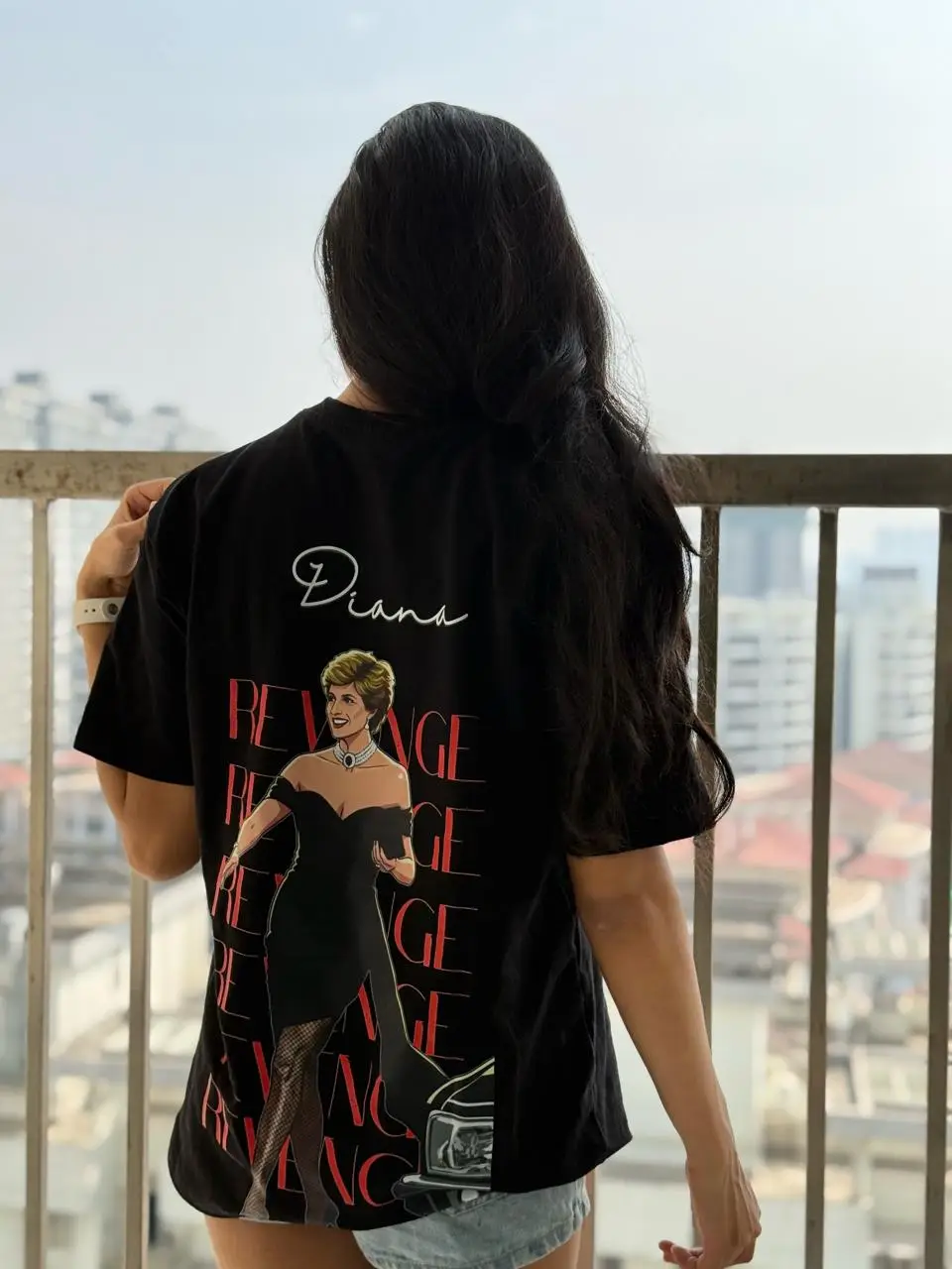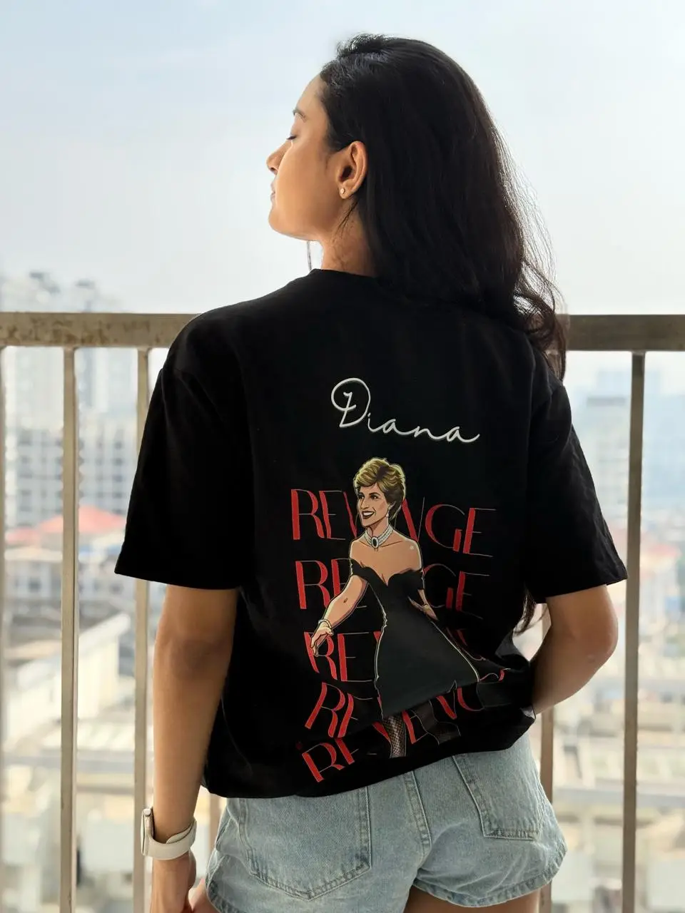 I absolutely love this Princess Diana oversized T-shirt The back print looks amazing and gives such a strong, classy vibe. The design really stands out and makes the T-shirt feel unique, not like regular basic tees. The oversized fit is perfect loose, comfortable, and very easy to style with shorts, jeans, or sneakers